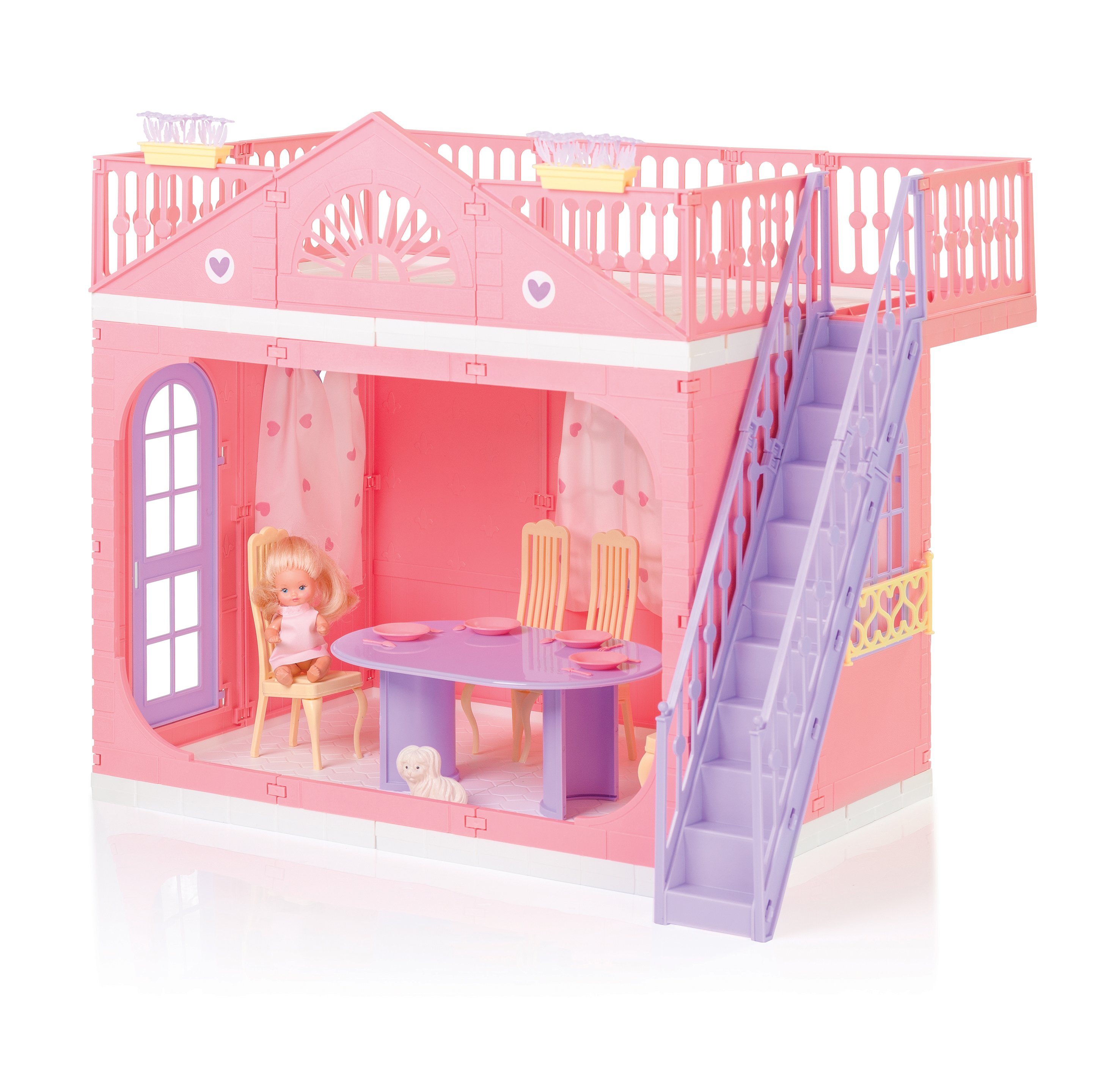 Каждая девочка - маленькая принцесса и у каждой принцессы должен быть свой маленький дворец. Кукольный Домик Маленькой Принцессы отвечает всем требованиям девочек: приятный розовый цвет стен, воздушная лестница, яркие наклейки, занавески в форме сердечек.