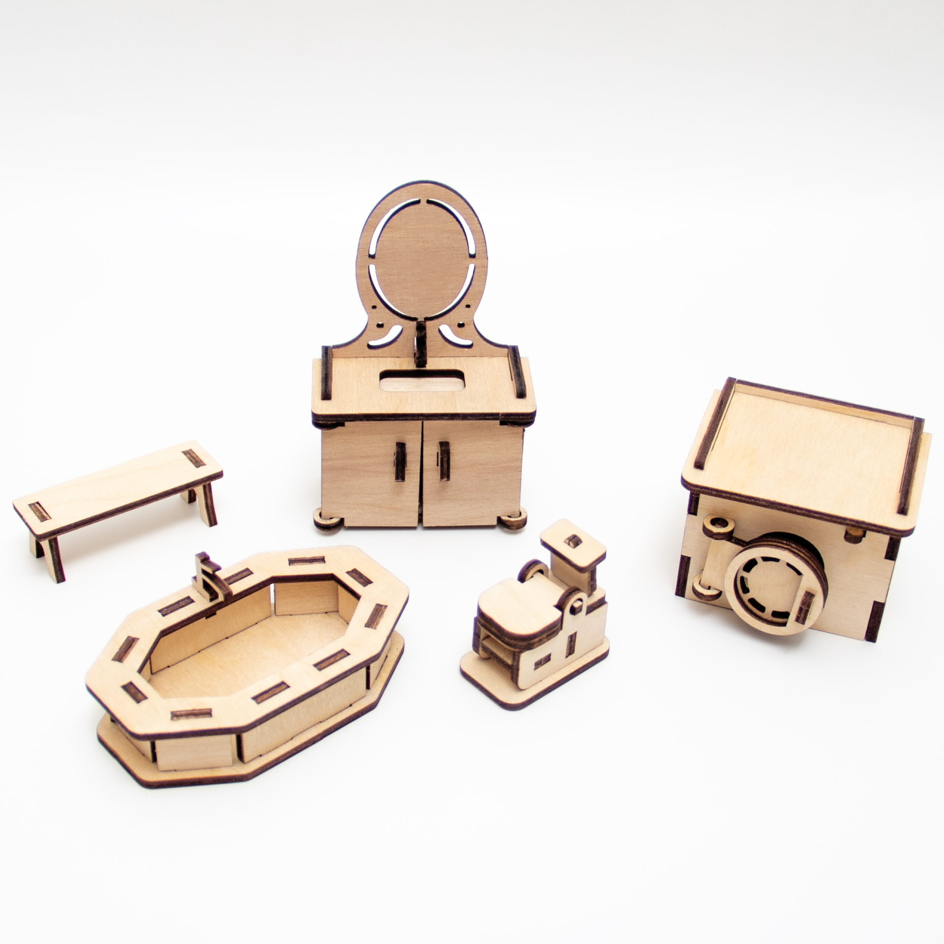 Игрушка изготовлена из дерева – экологически чистого и гиполаллергенного материала. Предназначена для детей от 3 лет. Набор мебели ‘’ванная’’ создан специально для одной из комнат кукольного домика. Упаковочная коробочка выполнена из древесно-волокнистой плиты высокой плотности. Мебель выполнена из высококачественной березовой фанеры, даже небольшие элементы, такие как ручки на дверцах. Все детали собираются с небольшим количеством клея, просто вставляются в пазы, крепление очень прочное и надежное. Набор кукольной мебели выполнен максимально реалистично – вся мебель имеет открывающиеся двери. Внутри тумбочек и шкафов есть полки. В этом наборе представлено максимальное количество предметов, чтобы дети могли играть долго и придумывать свои сценарии игры. Эти игрушки созданы с любовью и вниманием к вашим детям, пусть они играют с удовольствием и с воображением, развивают дизайнерский и художественный потенциал, обустраивая собственный домик.