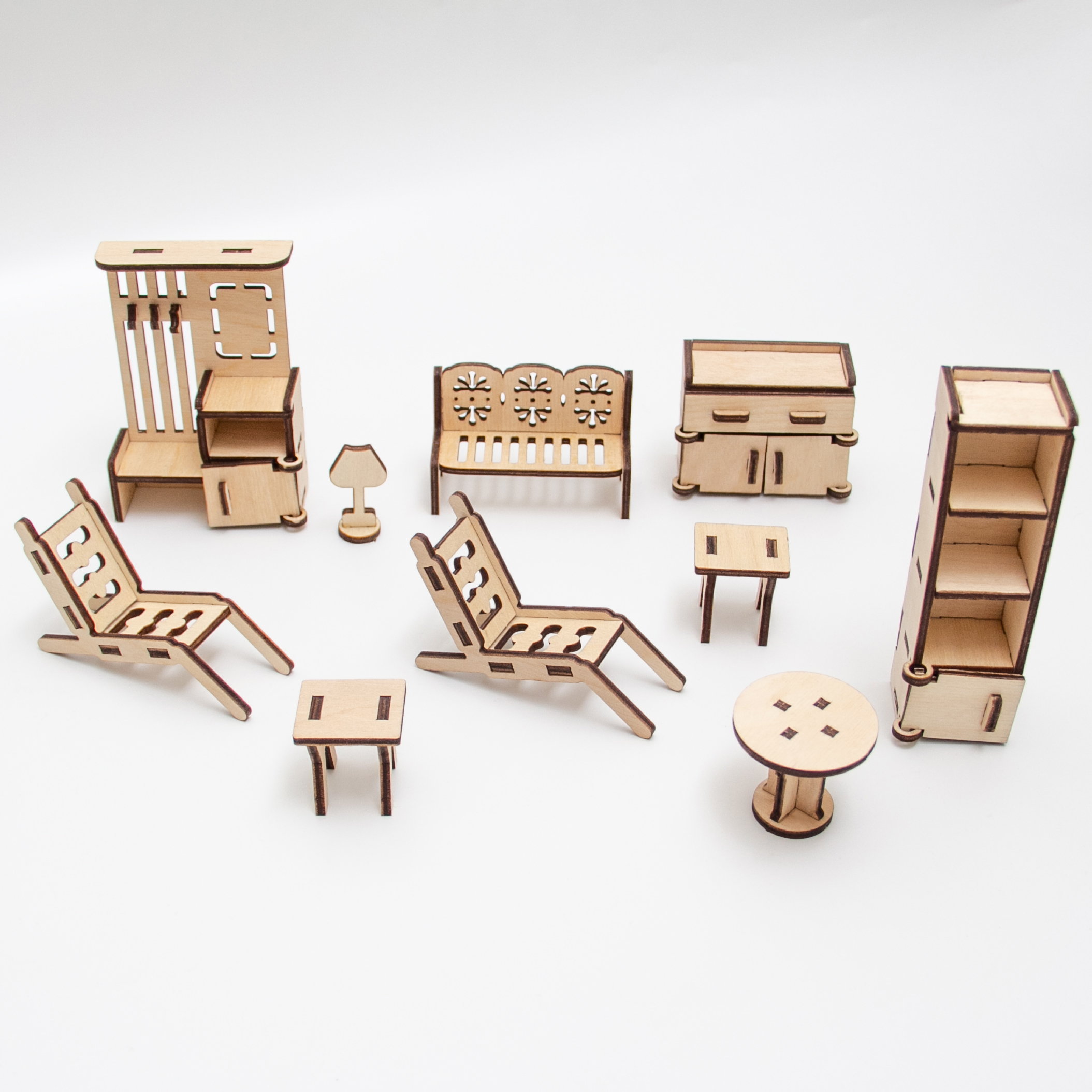Игрушка изготовлена из дерева – экологически чистого и гиполаллергенного материала. Предназначена для детей от 3 лет. Набор мебели ‘’зона отдыха’’ создан специально для одной из комнат кукольного домика. Упаковочная коробочка выполнена из древесно-волокнистой плиты высокой плотности. Мебель выполнена из высококачественной березовой фанеры, даже небольшие элементы, такие как ручки на дверцах. Все детали собираются с небольшим количеством клея, просто вставляются в пазы, крепление очень прочное и надежное. Набор кукольной мебели выполнен максимально реалистично – вся мебель имеет открывающиеся двери. Внутри тумбочек и шкафов есть полки. В этом наборе представлено максимальное количество предметов, чтобы дети могли играть долго и придумывать свои сценарии игры. Эти игрушки созданы с любовью и вниманием к вашим детям, пусть они играют с удовольствием и с воображением, развивают дизайнерский и художественный потенциал, обустраивая собственный домик.