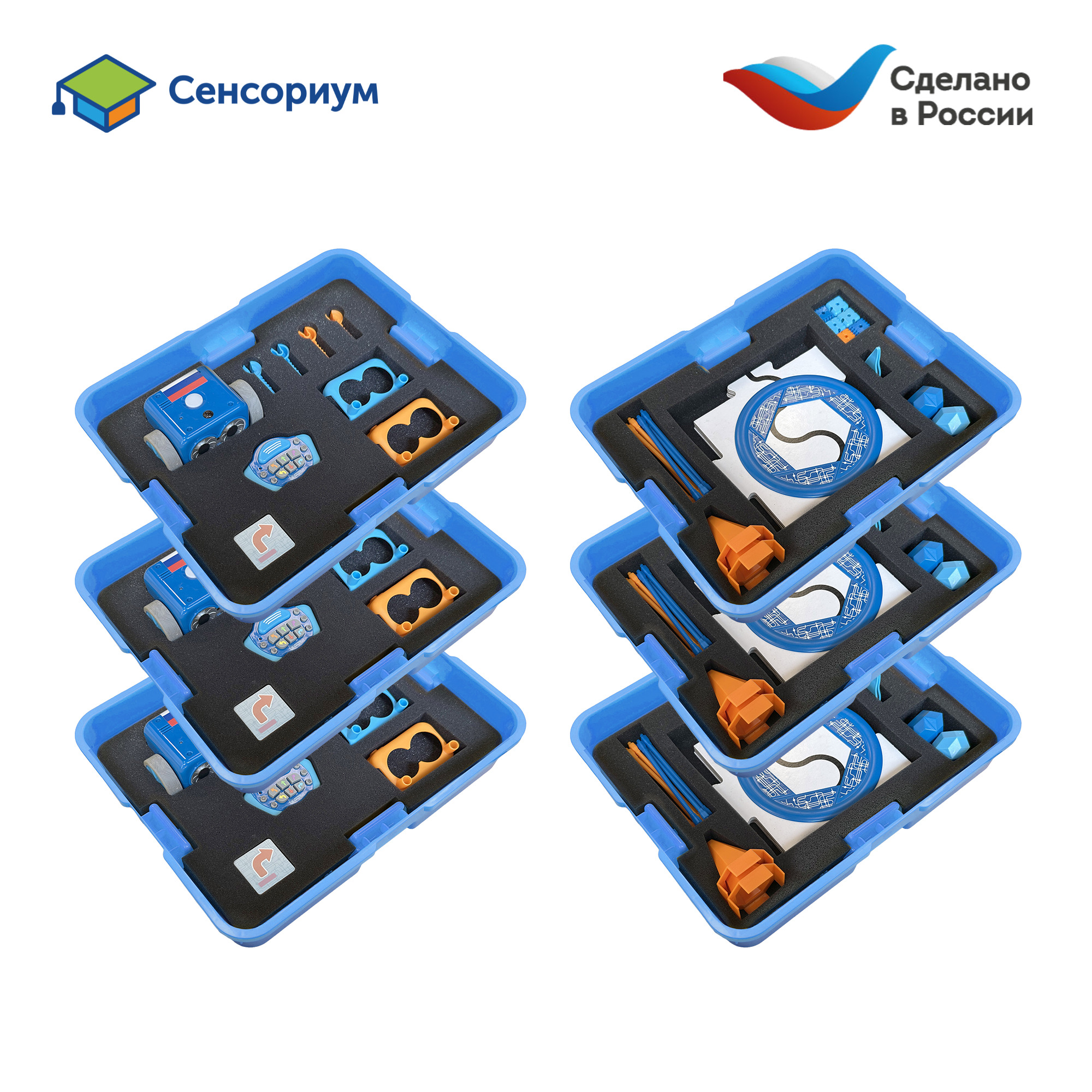 81 аксессуар для создания препятствий на пути робота: 24 палочек, 36 кубов, 6 конусов, 6 флажков, 6 мячей и ворота.