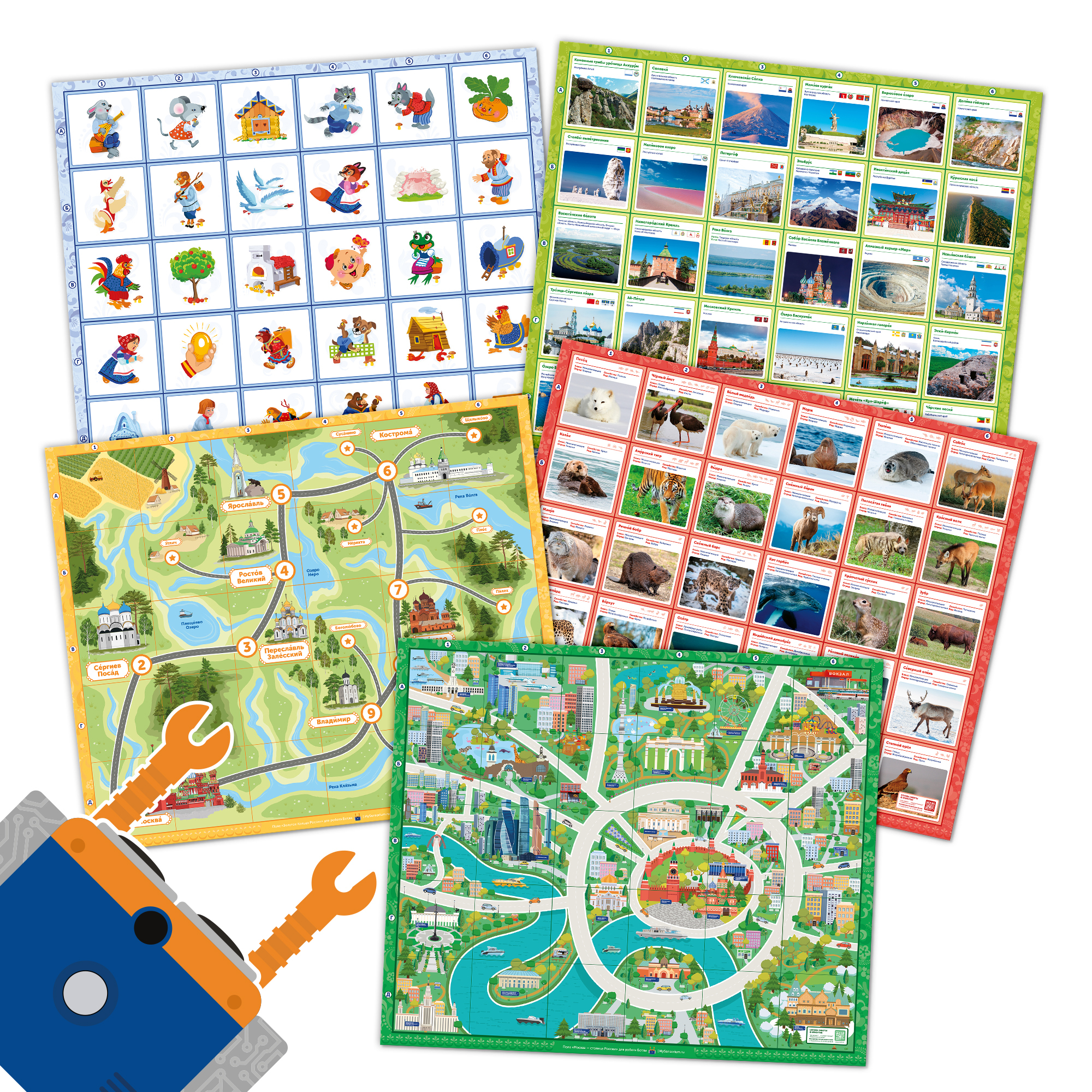 Комплект тематических полей является дополнением к программируемому роботу Ботли и Ботли 2.0. Работа с полями позволяет освоить навыки программирования и кодирования при параллельном интерактивном изучении природных, архитектурных, историко-культурных и техногенных объектов России. Подробнее
