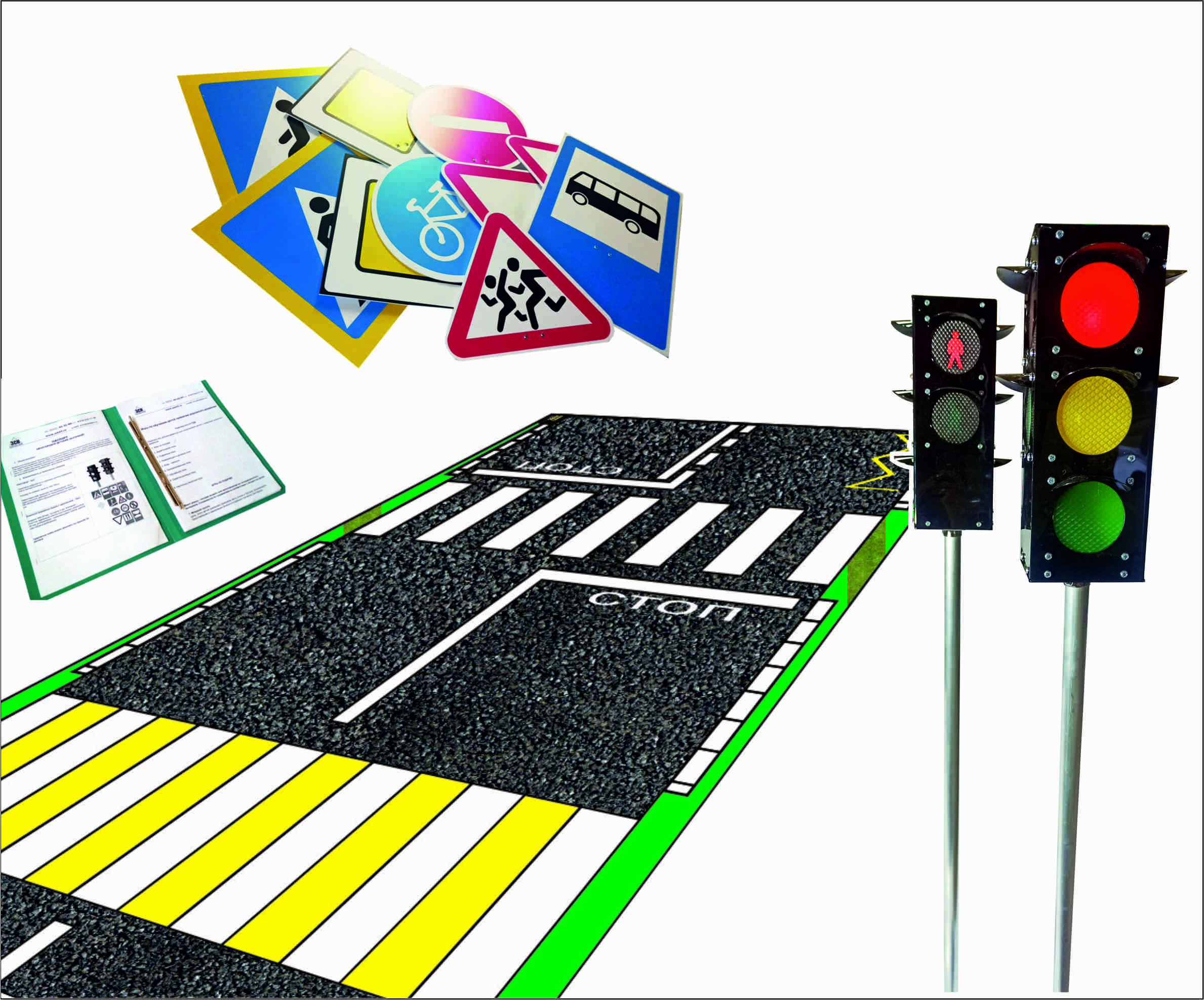 Сборка городка занимает несколько минут. С его помощью можно провести занятие где угодно, в спортивном зале, в холле или на открытой местности. В городке нет ничего лишнего, используемые дорожные знаки именно те, которые должен знать маленький пешеход. Подробнее