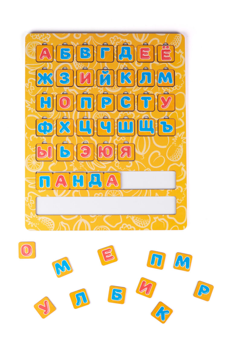 Как играть? Складывать буквы в определенные рамки. Попросите малыша найти каждой букве свою картинку — домик. Важно! Обязательно проговаривайте не только буквы, а еще и картинки к каждой букве. Данный дидактический материал будет вам очень полезен, если вы не только будете называть ребенку букву, но и обратите внимание, что, например — слово дыня начинается на букву Д, а на какую букву заканчивается это слово? Такие упражнения хорошо тренируют слуховое внимание.