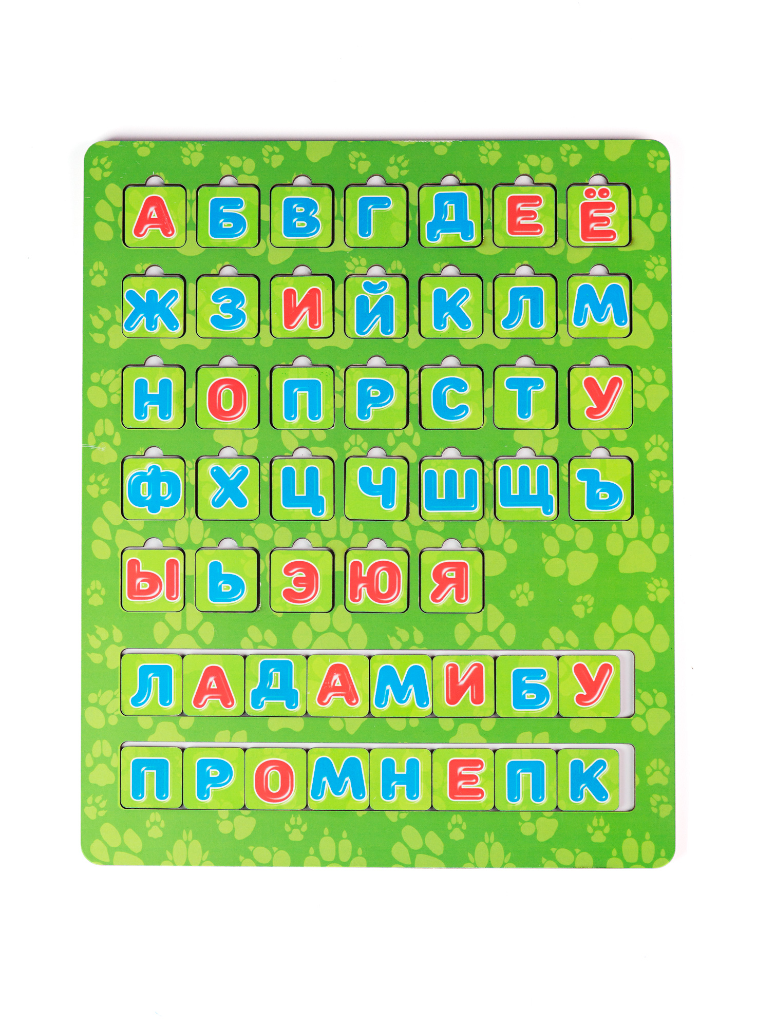 Как играть? Складывать буквы в определенные рамки. Попросите малыша найти каждой букве свою картинку — домик. Важно! Обязательно проговаривайте не только буквы, а еще и картинки к каждой букве. Данный дидактический материал будет вам очень полезен, если вы не только будете называть ребенку букву, но и обратите внимание, что, например — слово носорог начинается на букву Н, а на какую букву заканчивается это слово? Такие упражнения хорошо тренируют слуховое внимание.