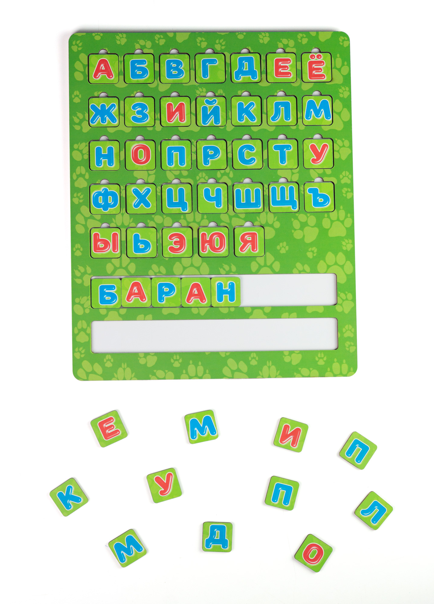 Две строки с дополнительными буквами для выкладывания слов и слогов.