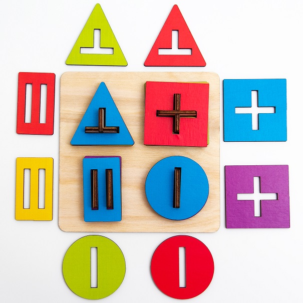 3. Развивает мелкую моторику. Через манипуляции с геометрическими фигурами ребенок прекрасно тренирует пальчики.