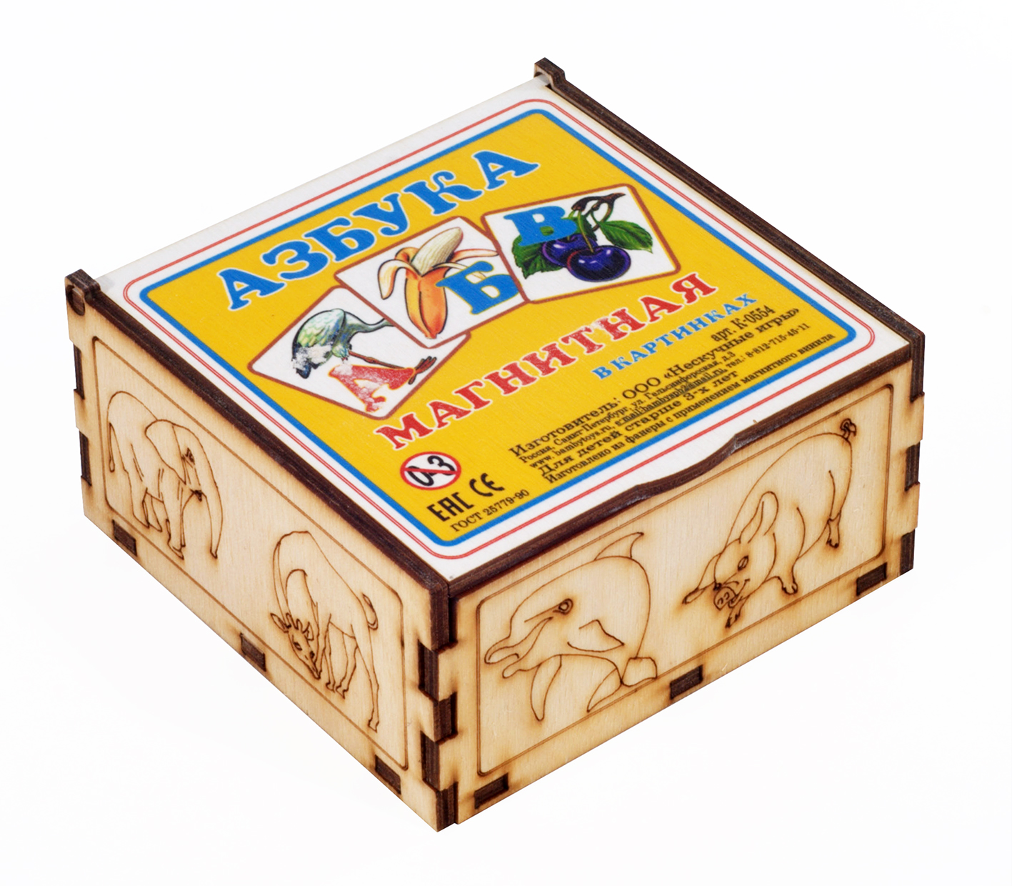 Магнитная азбука в картинках в коробке (дерево)