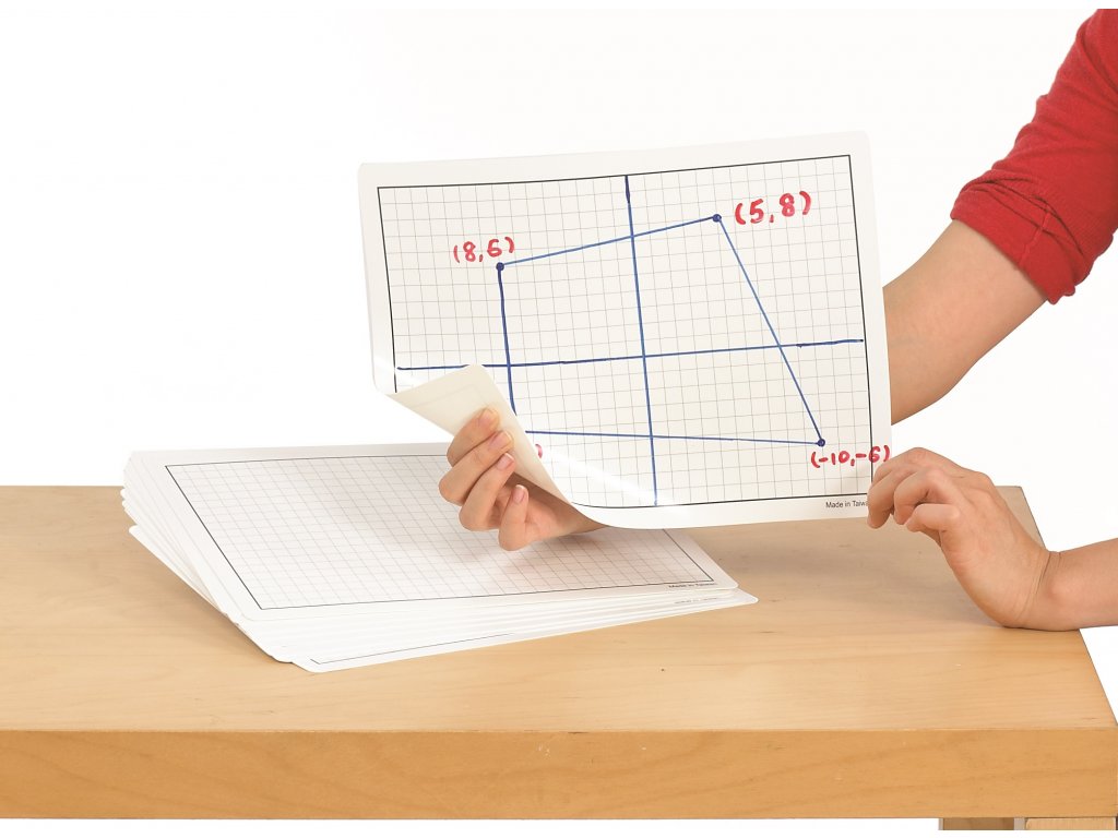 С одной стороны, маркерная доска чистая, с другой - изображена разлиновка: "клетка".