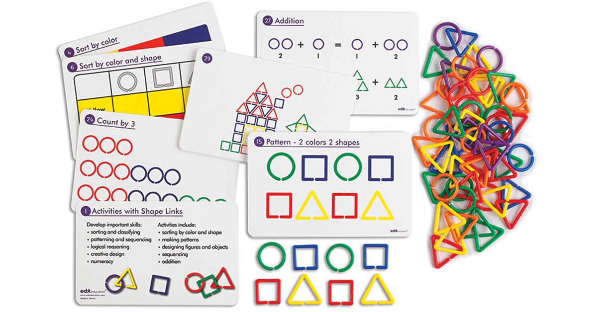 С помощъю звеньев можно составлять цветовые и геометрические ряды и цепочки, в том числе и по