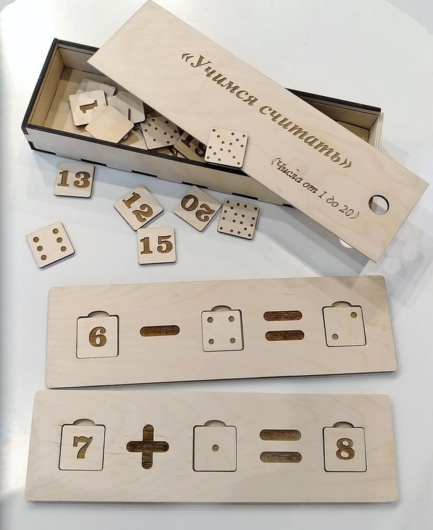 Эти вкладыши познакомят детей с цифрами, научат счету до 20, сложению и вычитанию. Благодаря тому, что вкладыши продублированы цифрами и кружочками, у ребенка будет развиваться визуальное восприятие и логика соотношения цифр с количеством изображенных предметов.