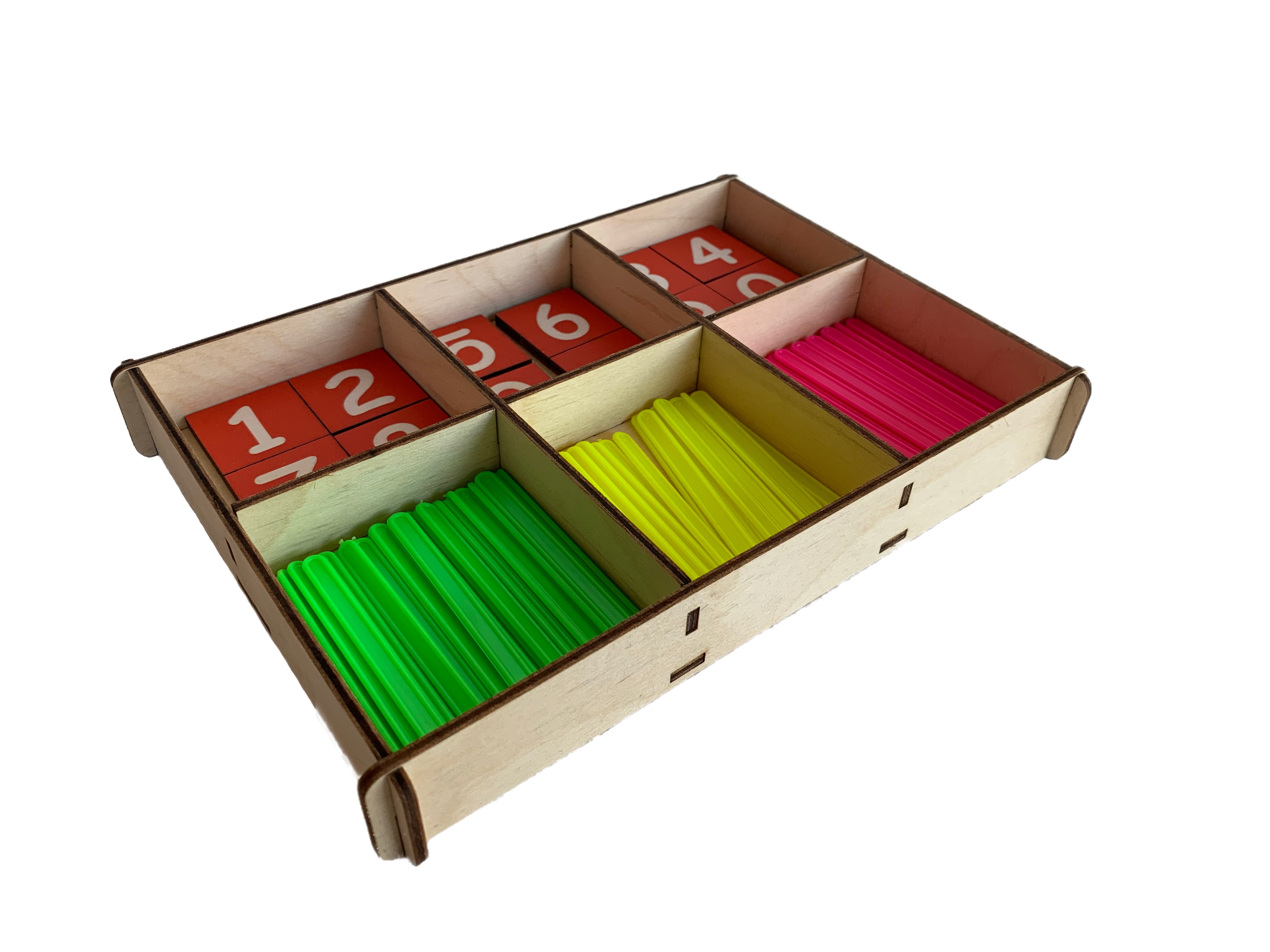 Палочки для счета в коробочках изготовлены из дерева – экологически чистого и гипоаллергенного материала.