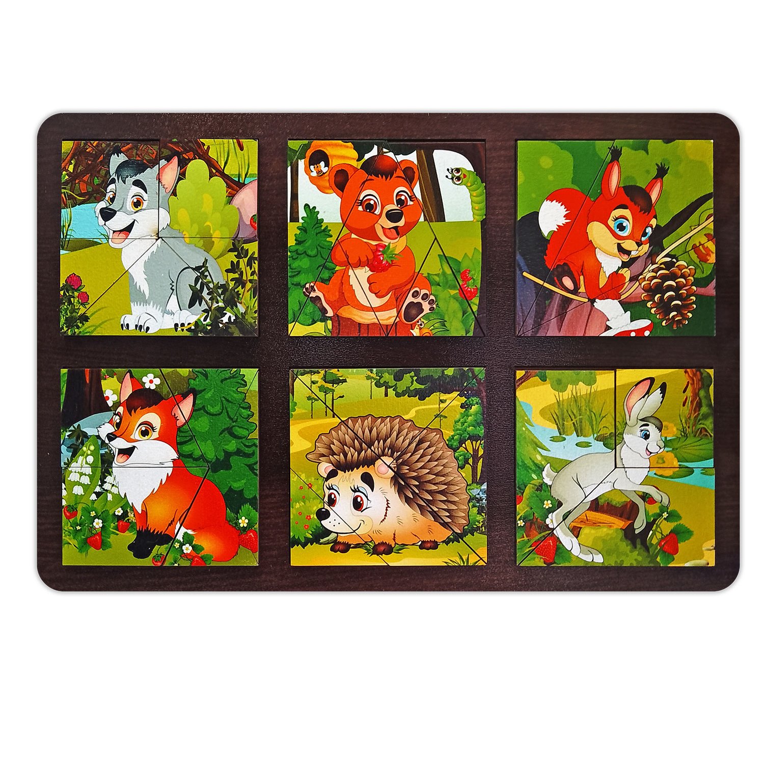 Развивающая доска "Сложи квадрат. Лесные животные"