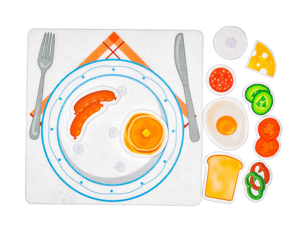 2. Игра «Готовим завтрак». Предложите ребенку посчитать, сколько всего продуктов в наборе? Попросите приготовить завтрак из любых 3, 5, 9 ингредиентов.