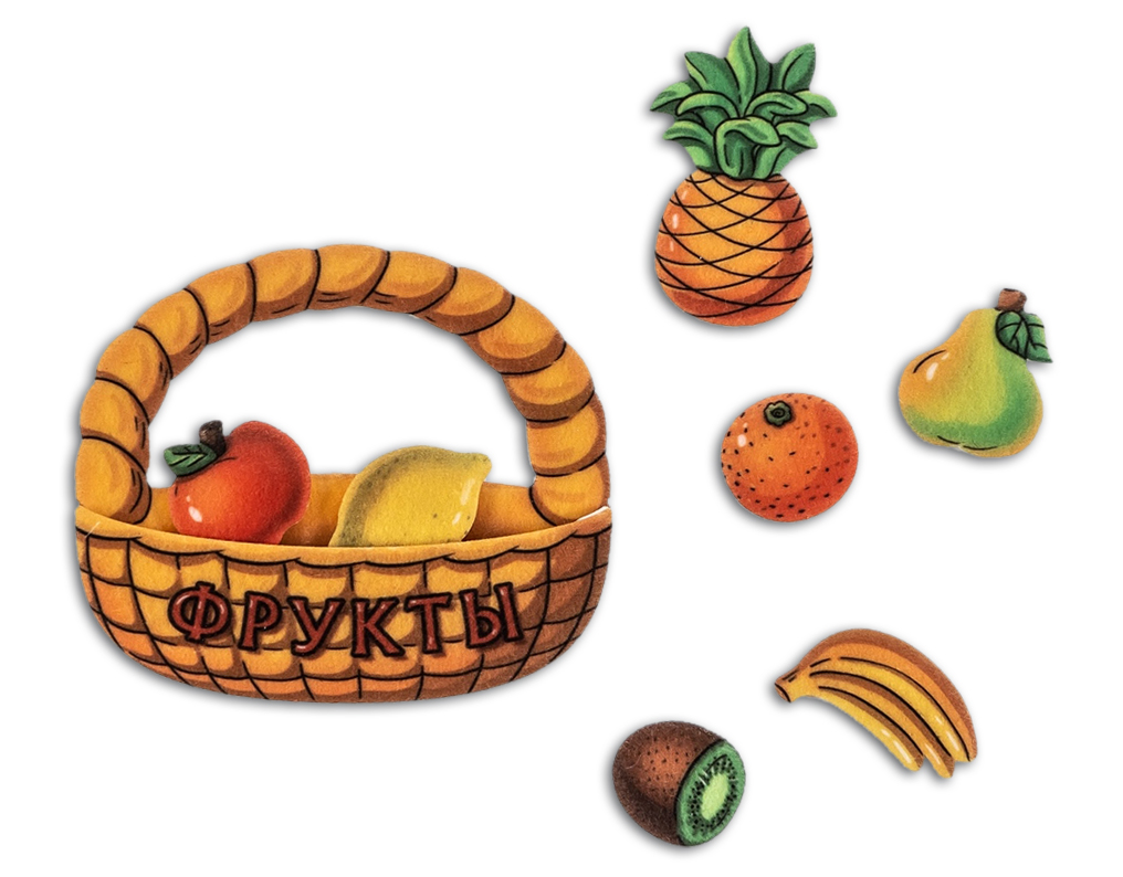 1. Рассмотрите корзину с фруктами вместе с ребенком. Назовите, какие фрукты лежат в корзине.