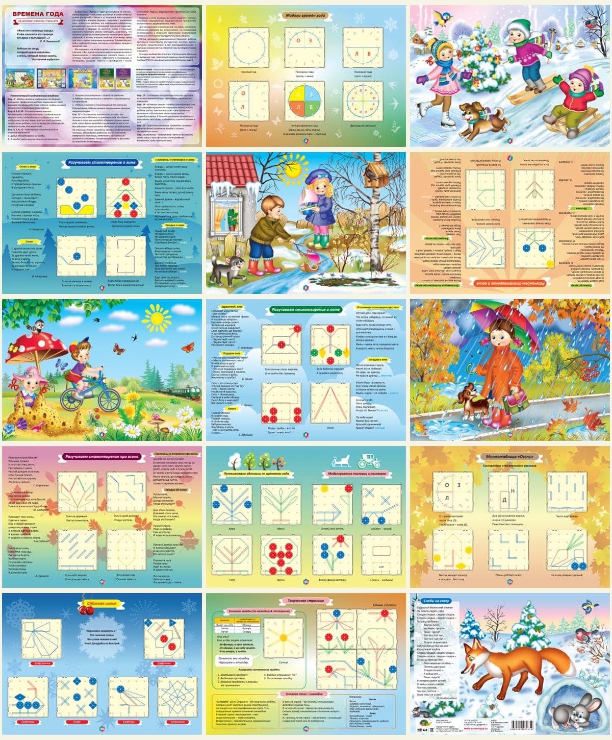 Метод наглядного моделирования позволяет ребёнку зрительно представить абстрактное понятие время, получить представление о его последовательности и единицах измерения (см. «Круглый год» на второй стороне планшета).