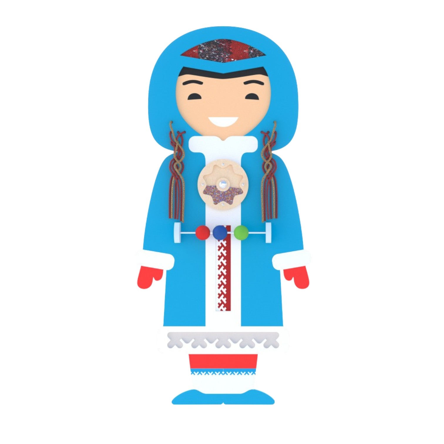 изиборд “Поти” – часть настенного оформления, специально разработанного для дошкольных учреждений. Это иллюстративный материал, который помогает детям знакомиться с культурой народов севера. Поти – персонаж, который напоминает о женственности и гармонии между человеком и природой. Национальная одежда народов Севера отличается функциональностью и адаптированностью к суровым климатическим условиям. Основное внимание здесь уделяется традиционной одежде — малице, которая служит обязательным атрибутом в арсенале северного человека. Это верхняя одежда, выполненная из оленьих или моржовых шкур. Отличием женского наряда от мужского было лишь в большем разнообразии вышивки и украшений.