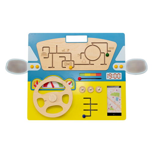 Эта большая развивающая панель не останется без внимания, каждый ребенок захочет «как папа» сидеть за рулем автомобиля и управлять процессом! А когда интерес обеспечен, педагогу остается только мягко задавать направление в обучении.