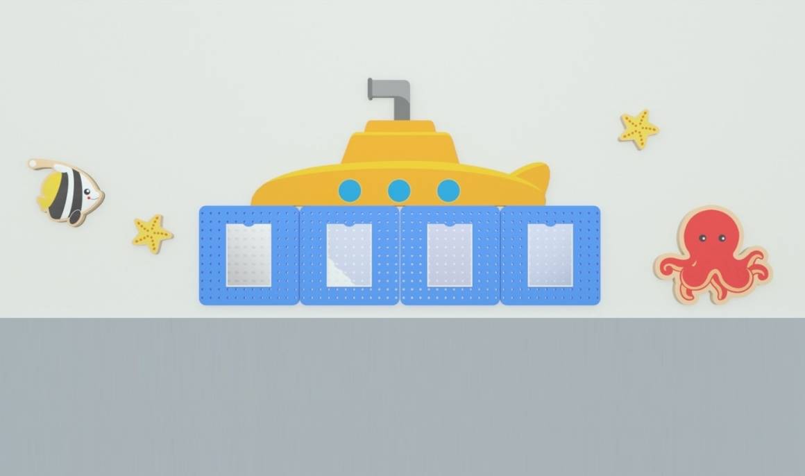 Комплектация : панели перфорированные с карманами А4 - 4шт, декор субмарина, осьминог, морские звезды - 2шт, рыбка.