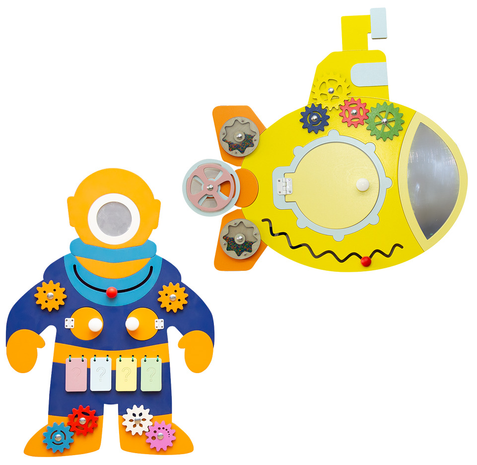 Два бизиборда – подводная лодка и водолаз для оформления стен детского сада.