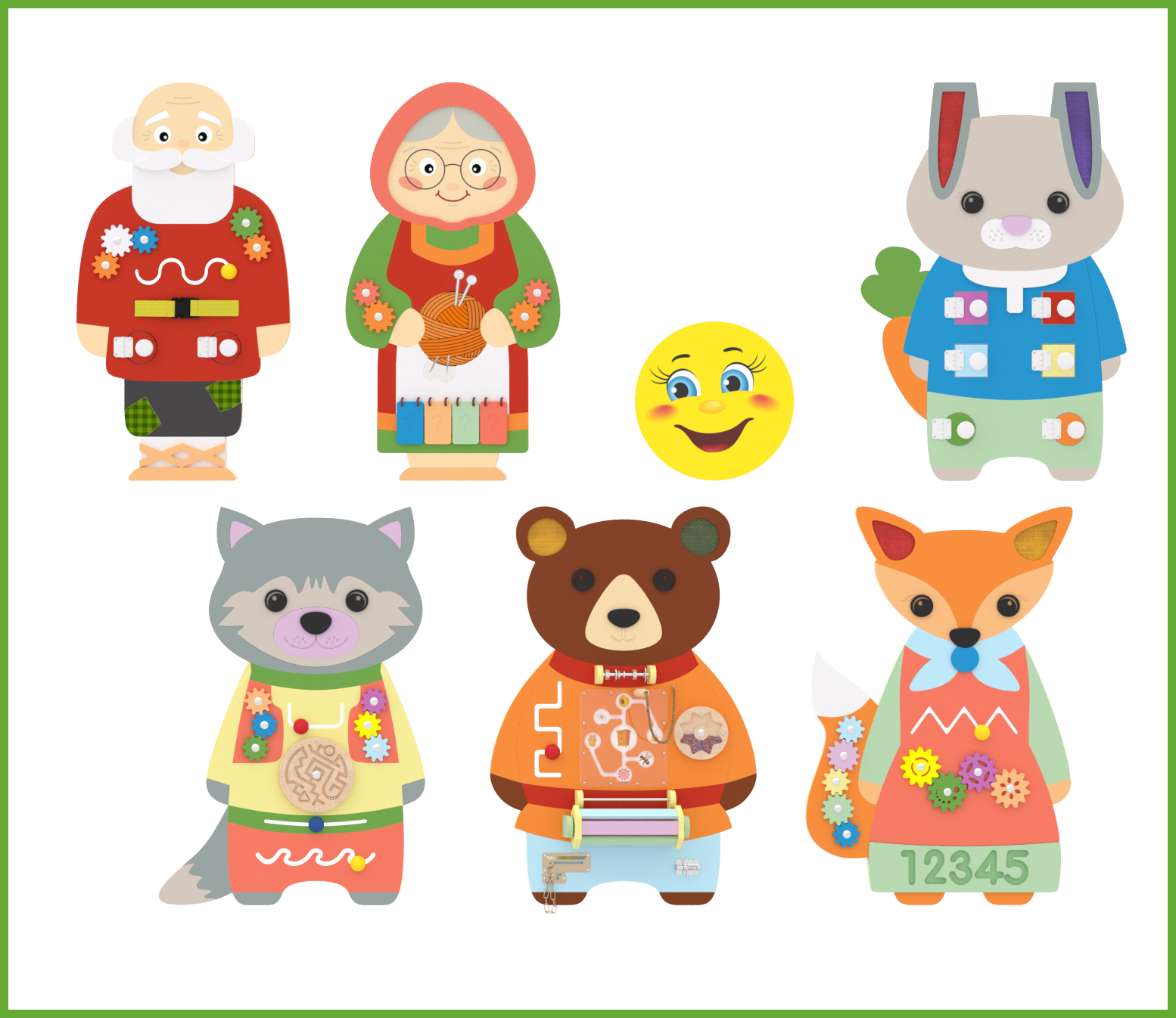 Отличный материал для включения сказок в образовательный процесс — набор бизибордов на сказочную тематику. Он предназначен для развития речи и мелкой моторики, а также изучения детьми русского народного творчества. В набор входят герои и ключевые объекты сказки, благодаря чему можно разыгрывать сказочный сюжет. Подробнее