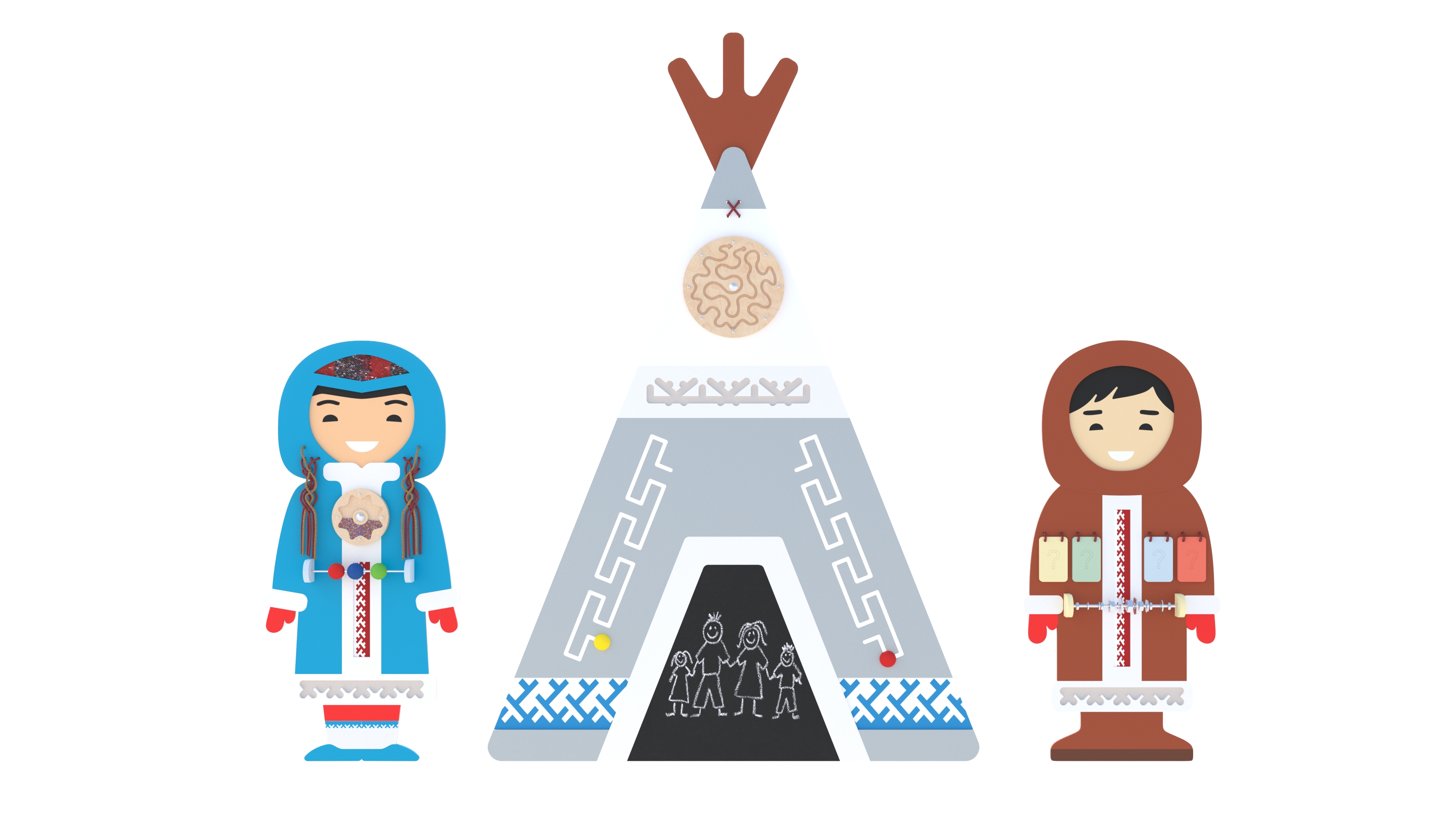 Комплект бизибордов «Поти», «Эви» и «Чум» — это рассказ о Крайнем Севере и его национальных особенностях. В комплекте с декоративно-развивающей картой региона будет готовым эстетичным и дидактически наполненным оформлением для уголка краеведения в дошкольном учреждении.
