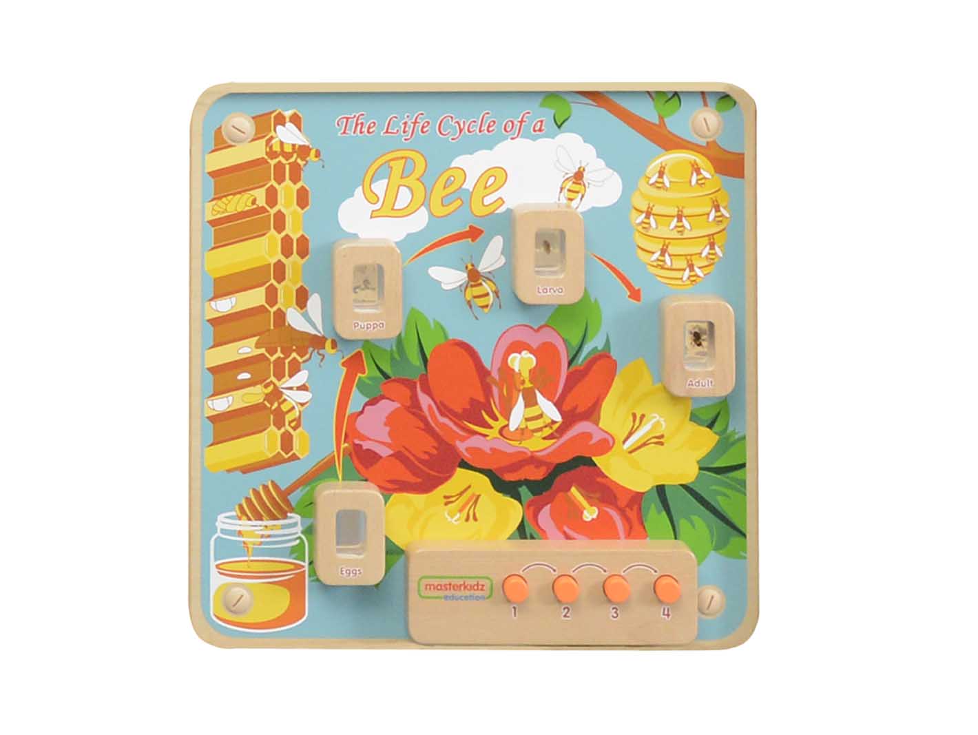 Панель с настоящими образцами, в прозрачных акриловых блоках, которые позволяют детям увидеть, внимательно изучить и обсудить жизненные стадии пчелы, начиная с яйца, личинки, куколки и заканчивая взрослой пчелой. Можно подробно рассмотреть каждый из них по очереди с помощью
