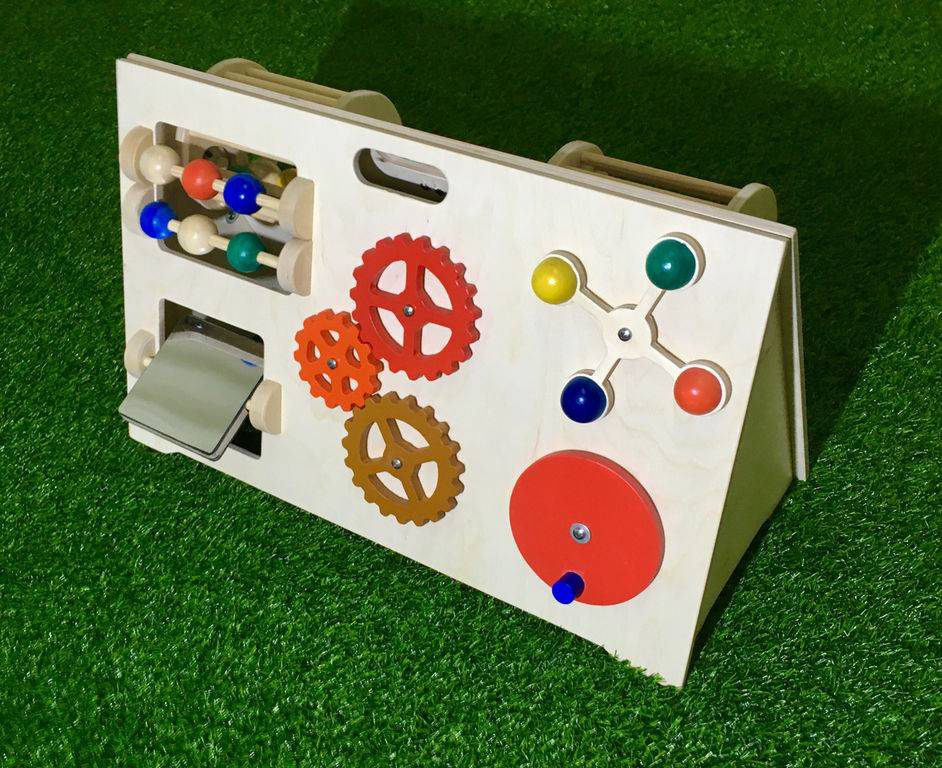 Благодаря этой панеле ребенок научится устанавливать причинно-следственную связь, развить осязательные навыки, мелкую моторику и укрепить зрение.