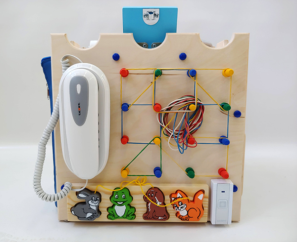 телефон, геоконт с резинками, объемные магнитные животные, кнопка звонка