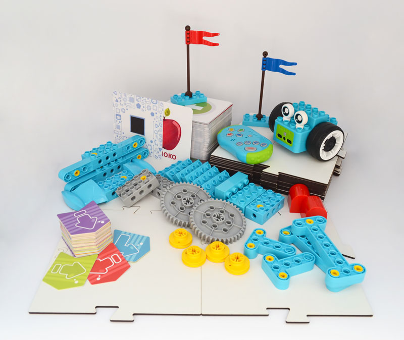 Конструктор для обучения основам алгоритмики 246 деталей: робот, пульт для программирования (управления) робота, детали конструктора, 40 опорных карт-указателей, 20 элементов дидактического поля для игры с роботом, 140 дидактических карт для игры с роботом (isbn 978-5-6052363-8-2), учебно-методическое пособие "Безэкранное программирование робота. Игры для формирования алгоритмического мышления у детей дошкольного и младшего школьного возраста" (isbn 978-5-6052363-9-9), учебно-наглядное пособие "Книга идей 100 моделей из конструктора Алгоритмик" (isbn 978-5-6052363-7-5), контейнер для храния деталей с крышкой