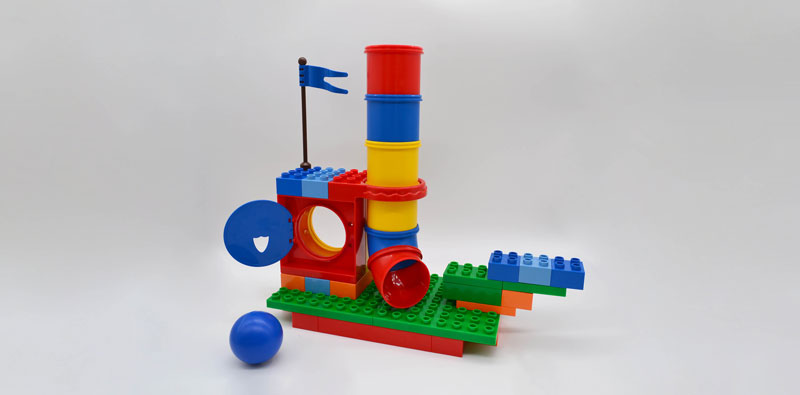 Конструктор для конструирования простых моделей из блоков крепление шип-паз 164 детали; может использоваться как дополнительный набор деталей к конструктору Алгоритмик Робот Коди: детали конструктора (арки, трубы, кубики, минифигурки),учебно-наглядное пособие "Книга идей 100 моделей из конструктора Алгоритмик" (isbn 978-5-6052363-7-5), контейнер для храния деталей с крышкой