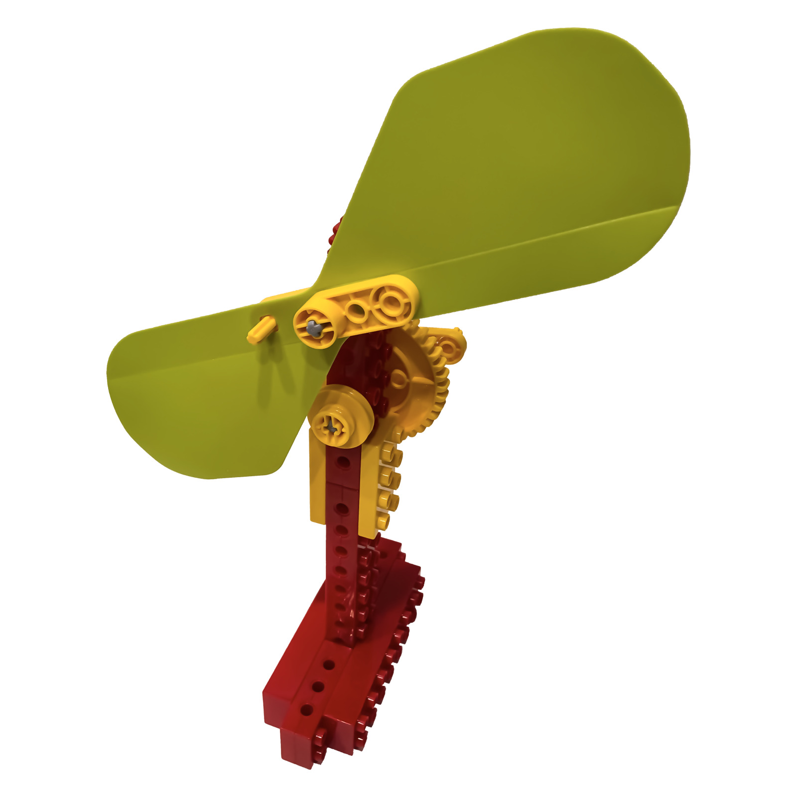 В состав конструктора входят: зубчатые колеса, рычаги, ролики, колеса, оси и пластиковый блок с нарисованными глазами, паруса, весы и крылья.