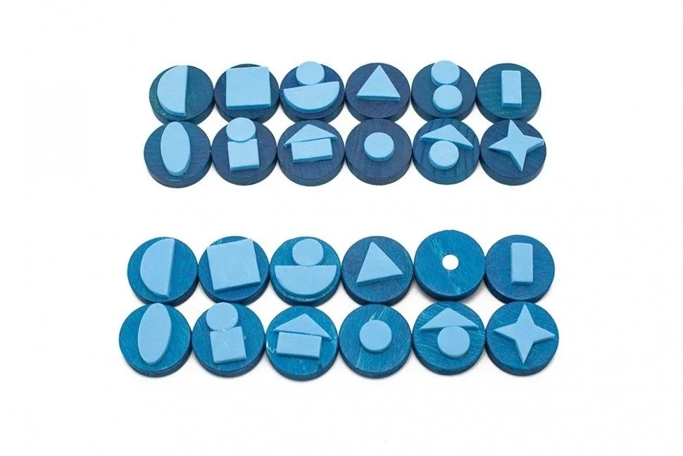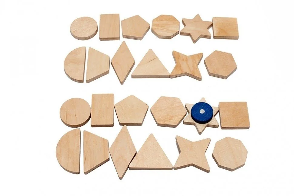 № 2) 12 плоских геометрических фигур (форм) на магнитах и 12 их дублей без магнитов;