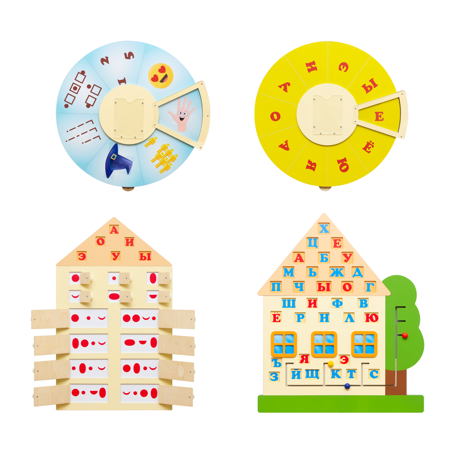 Бизиборд «Дом со звуками» — 75 х 90 см Бизиборд «Звуковой анализ» — 60 х 100 см