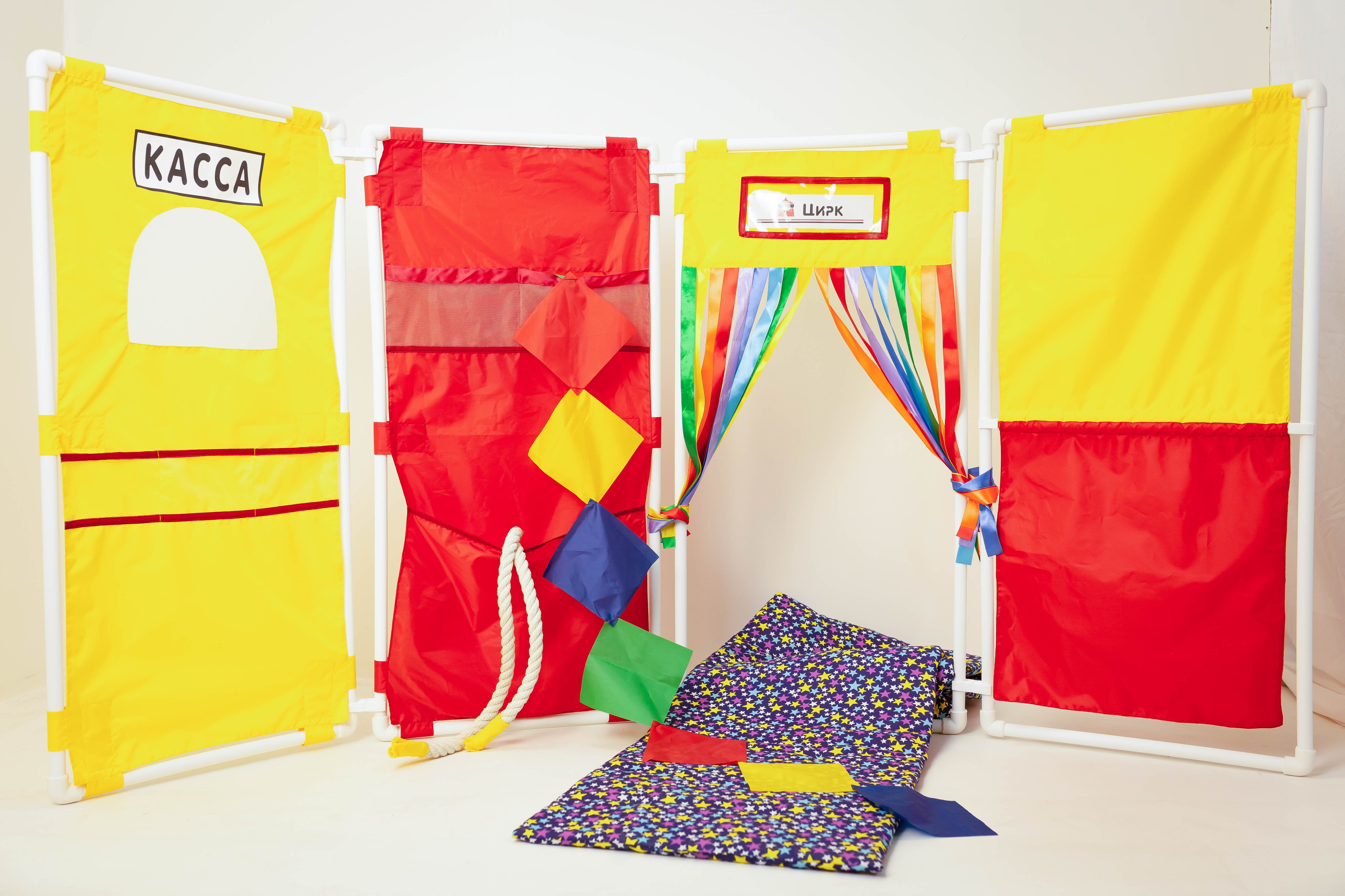 1. 4 накидки, каждая пристегивается к ширме с помощью липучек, нашитых на ткань.