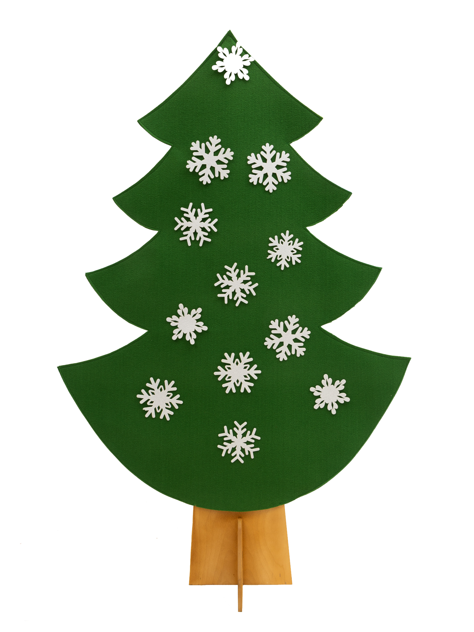 Описание: Чехол елка сделан из ковролина зеленого цвета. 4 яруса веток. Сугроб (7 деталей) из белого фетра, 10 снежинок с липучкой сзади, 12 шаров из желтого фетра с наклейками с липучкой сзади, нарядная верхушка из желтого фетра. Чехол с деталями упакован в пэ пакет. Для придания формы чехол после транспортировки необходимо отпарить.