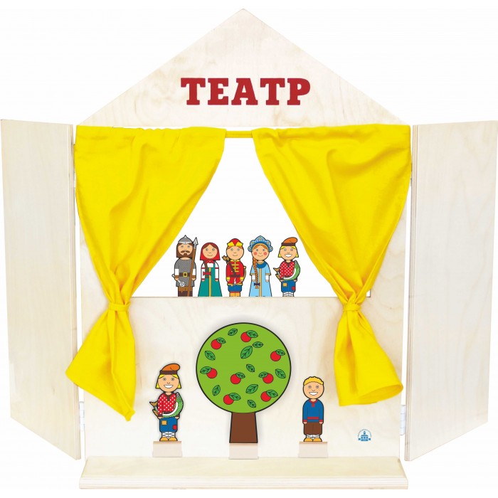 Ширма с яркими шторками для разыгрывания различных сюжетов. К комплекту в подарок прилагаются 3 сказочных персонажа.
