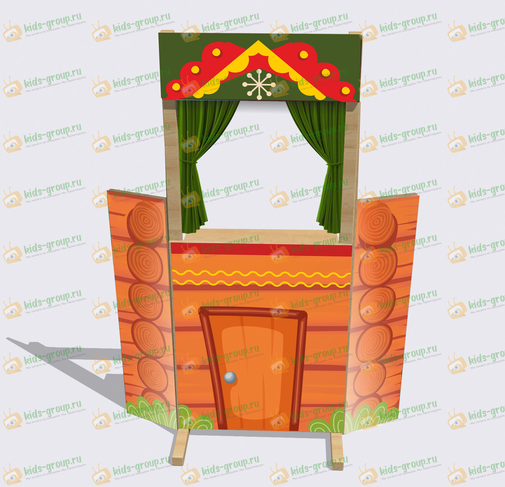 Качественная и надежная ширма для кукольного театра в детском саду. Материал: березовая фанера высшего сорта и массив дерева. Рисунок нанесен методом прямой УФ печати по дереву, яркий, не выцветет и не сотрется со временем. Мы используем безопасные краски и лаки.