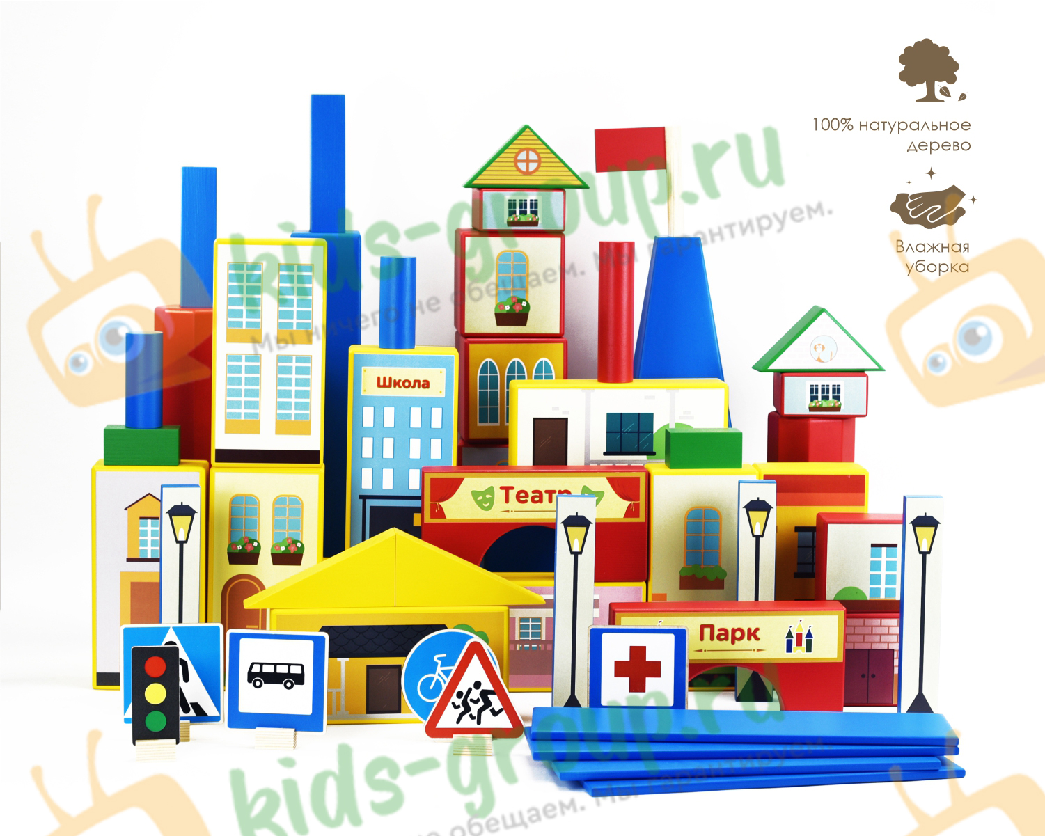 Конструктор детский напольный из дерева "Город" 58 деталей