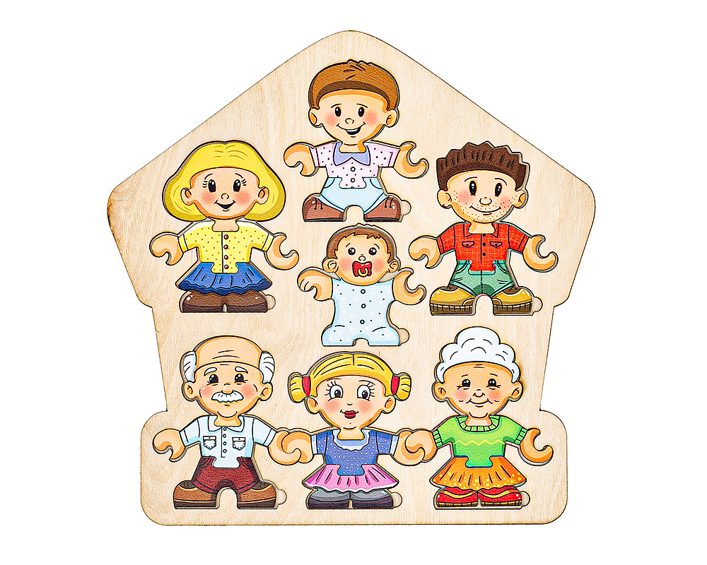 3. Игра «Семейный фотоальбом». Опишите словами внешность одного из членов семьи (цвет волос, настроение, элементы одежды). Попросите ребенка из элементов пазла собрать фотографию по вашему словесному описанию.
