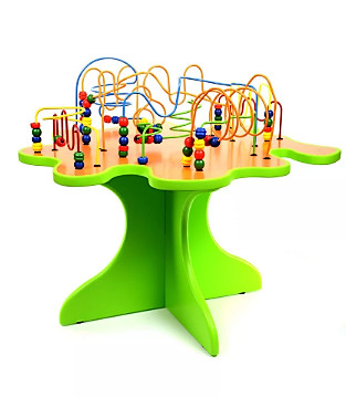 Дидактический стол необычной формы, без острых углов, дополнит интерьера игровой комнаты или уголка. Он надолго увлечет малышей, ведь на нем такое большое количество изогнутых лабиринтов с бусинами. Такая простая игра способствует развитию зрительно-моторной координации, усидчивости, пространственного восприятия.