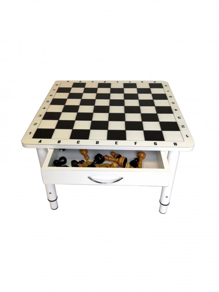 Стол для игры в шахматы и шашки с выдвижным ящиком для хранения фигур (в комплект не входят), высота стола регулируется.