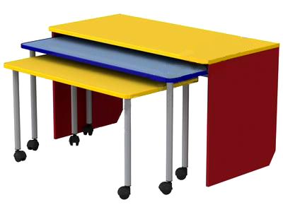 Выполнен из ламинированной ДСП (ЛДСП) 16 мм, обрамлены кантом ПВХ 2 мм, все углы закруглены. В комплект входят: тумба-стол 1150х560х640; стол прямоугольный на металлических ножках выкатной 1100х500х580; стол прямоугольный на металлических ножках выкатной 930х500х520 мм. Цвет на выбор.