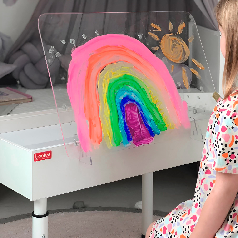 Прозрачная крышка/мольберт — это современное образовательное устройство, изготовленное из прочного и небьющегося акрила (оргстекла). Крышка используется в качестве увлекательного и образовательного инструмента в арт-терапевтических занятиях.