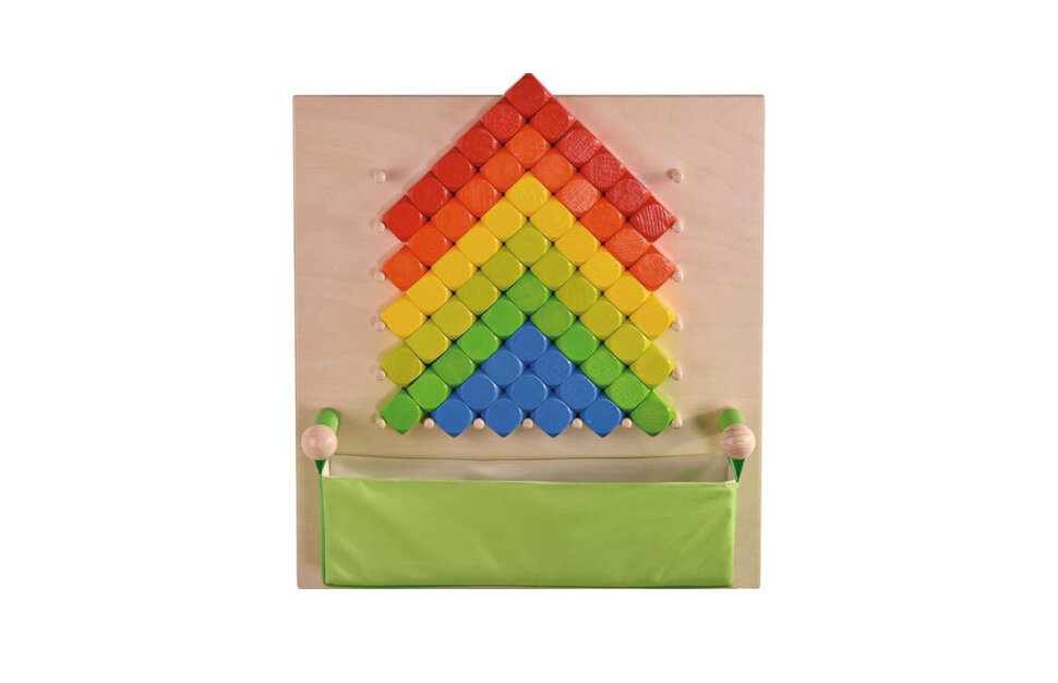 Мозаика на стене служит для развития пространственного мышления и мелкой моторики. В комплекте 72 цветных брусочка.