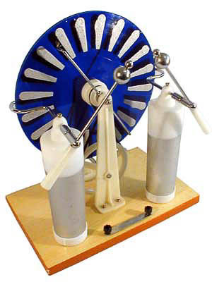 Прибор представляет собой два вращающихся в противоположные стороны пластмассовых диска на стойках и две лейденские банки. Внешние обкладки банок соединяются между собой подвижной пластиной, расположенной между двумя зажимами, а внутренние соединены с отдельными кондукторами. За изолирующие ручки кондукторы можно поворачивать и изменять расстояние между ними. С внешней стороны на диски нанесены алюминиевые секторы, с которыми соприкасаются щетки, укрепленные в щеткодержателях.