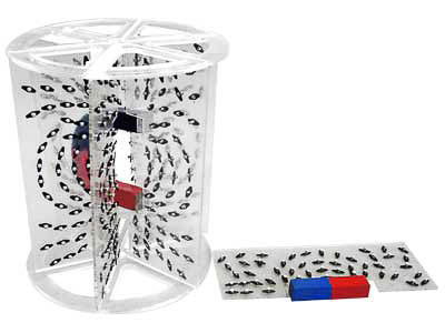 Модель представляет собой дискретный цилиндр с шестью диаметрально и равномерно расположенными пластинами, одна из которых сменная. Модель выполнена из прозрачной пластмассы. На пластинах установлено множество легкоподвижных ферромагнитных стрелок. Одна из сменных пластин имеет дугообразный вырез для установки в модель U-образного магнита. Подробнее