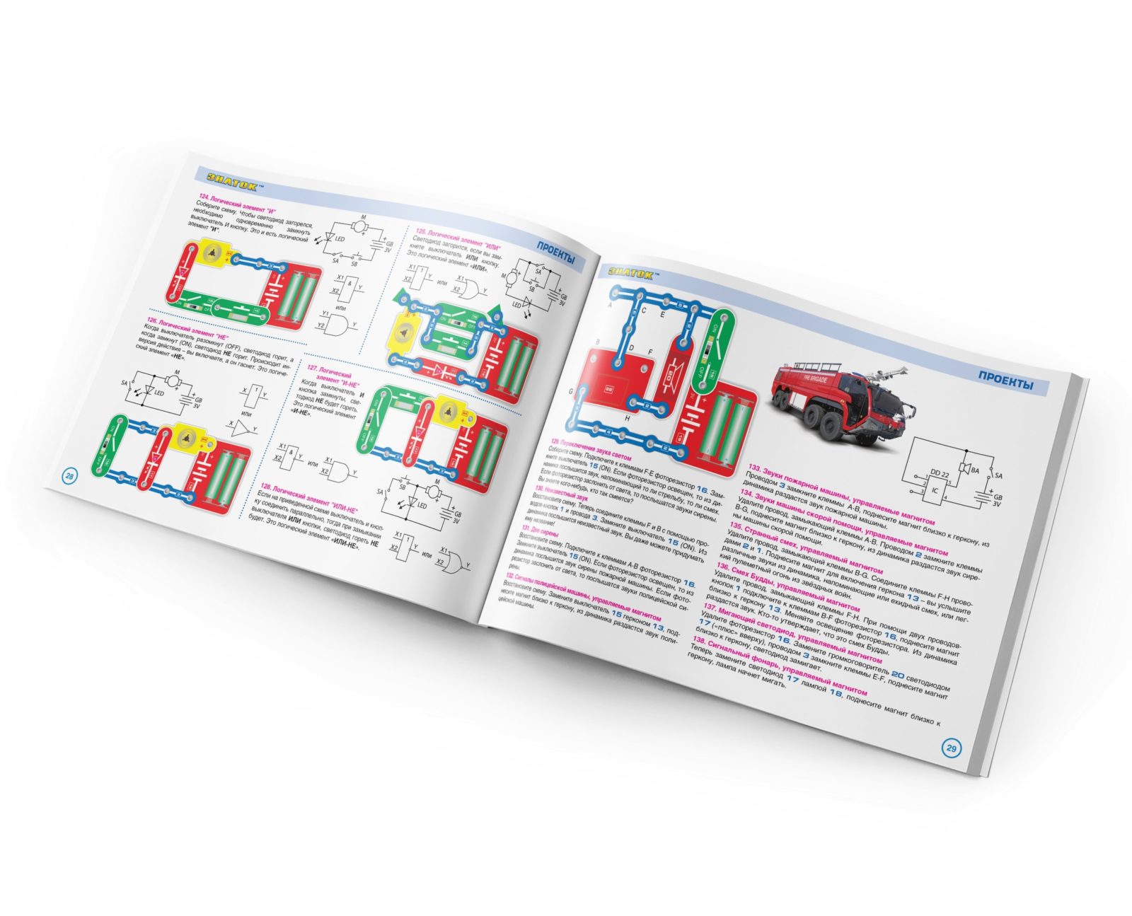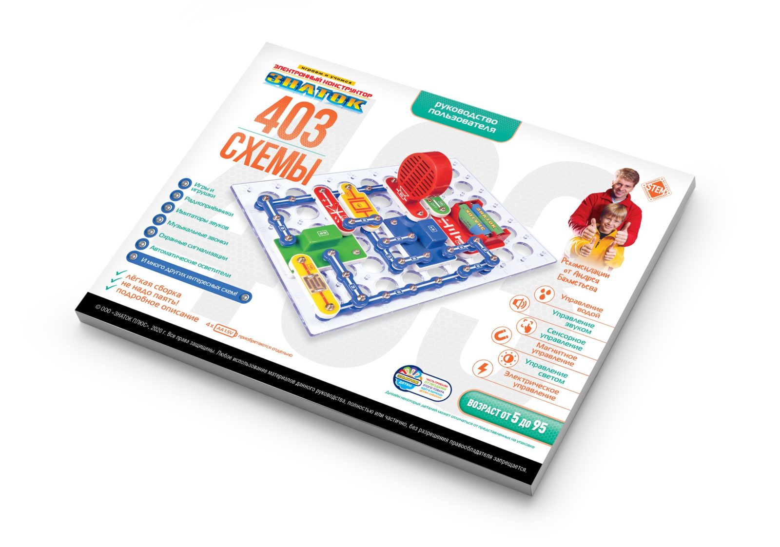Мы рекомендуем данный конструктор для детей 5-10 лет, но он рассчитан практически на любой возраст – даже дедушкам будет интересно поиграть вместе с внуками. Простота соединений и ясность описания позволяет собирать сложные схемы даже ребенку пяти лет, но даже умудренному в электронике человеку будет интересно собрать и опробовать схему, а затем воплотить её в реальной жизни. Подробнее