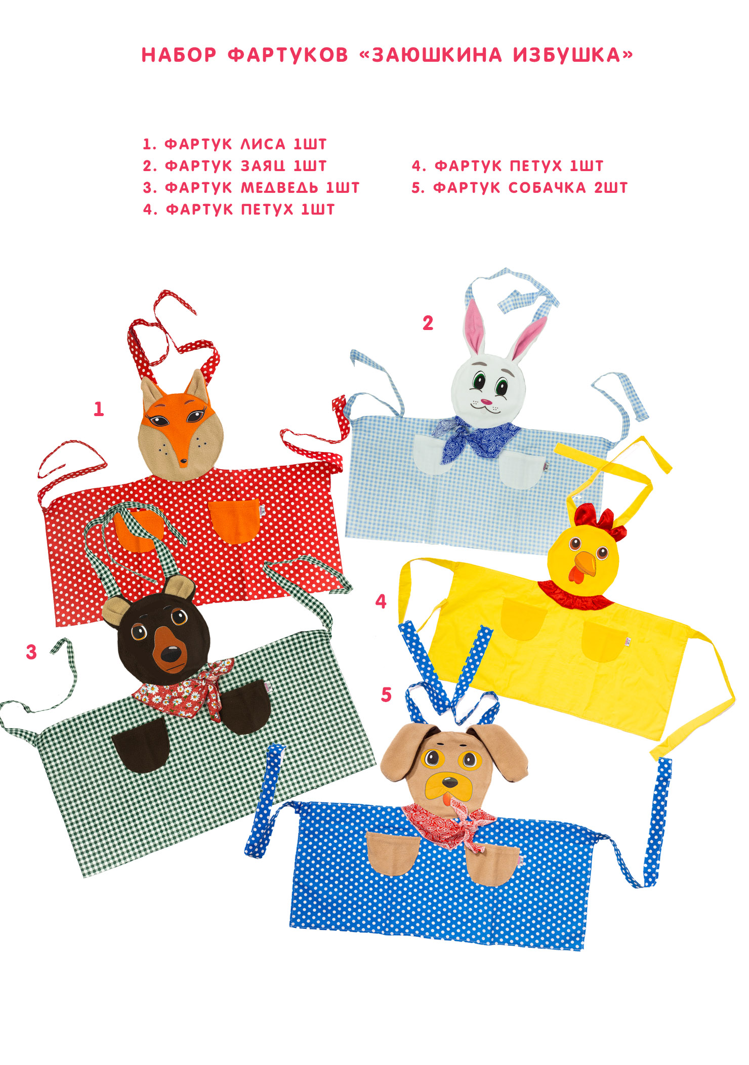Набор фартуков - Заюшкина избушка (6 фартуков)