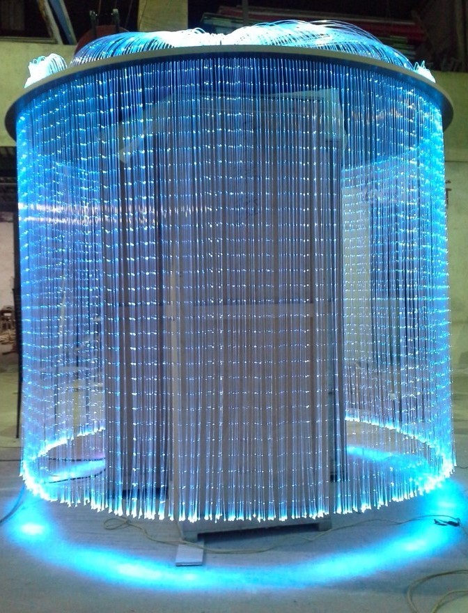 Надежная основа на стальной раме. Все волокна в прозрачной оболочке, диаметр волокон 2.5 мм. Высокая яркость свечения благодаря профессиональному источнику света. Полностью зеркальная "крыша" из безопасного небъющегося материала. Мягкое покрытие под ногами.