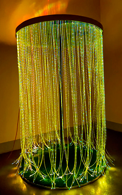 Напольная конструкция в виде домика со свешивающимися по периметру безопасными фибероптическими волокнами в оболочке. Количество зависит от модели. В зависимости от среднего возраста посетителей подбираются модели мини, стандарт и гигант. Дети "ныряют" и "выныривают" туда/обратно. На центральную консоль могут быть добавлены интерактивные элементы с сенсорными датчиками. Любые размеры под заказ.